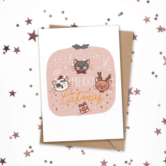 Pink Cat choir - Merry Catmas - Cat Christmas cards