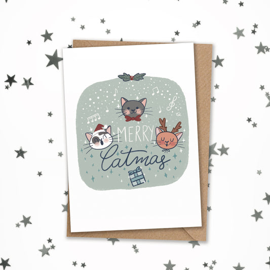 Green Cat choir - Merry Catmas - Cat Christmas cards