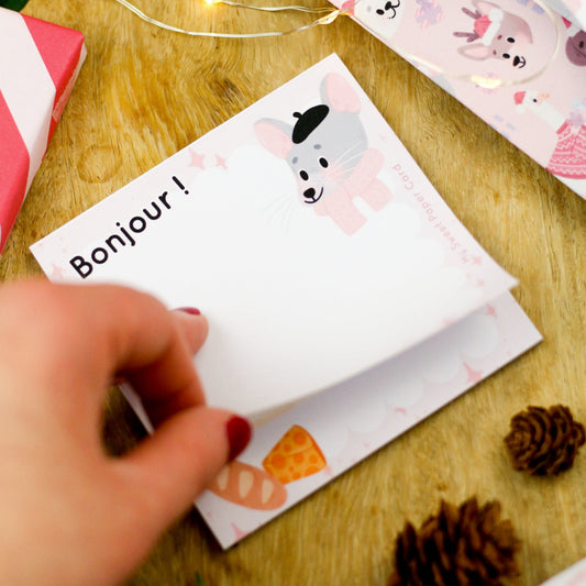 French Mouse notepad - Cheese and baguette - Gifts from France