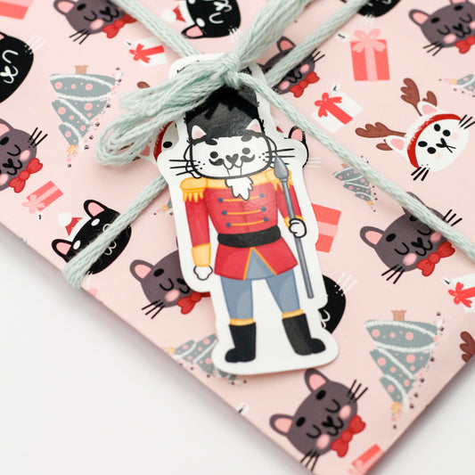 Étiquettes-cadeaux Chat casse-noisettes - Emballage de Noël mignon