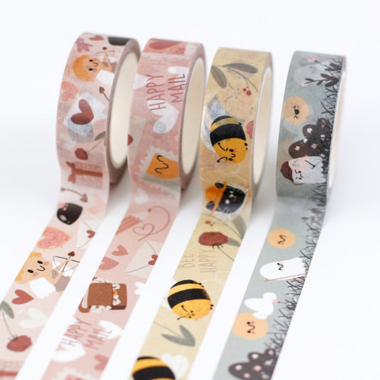 Lot de 4 washi tapes - Bee, Ghosty Spring, Happy Mail & Valentine washi