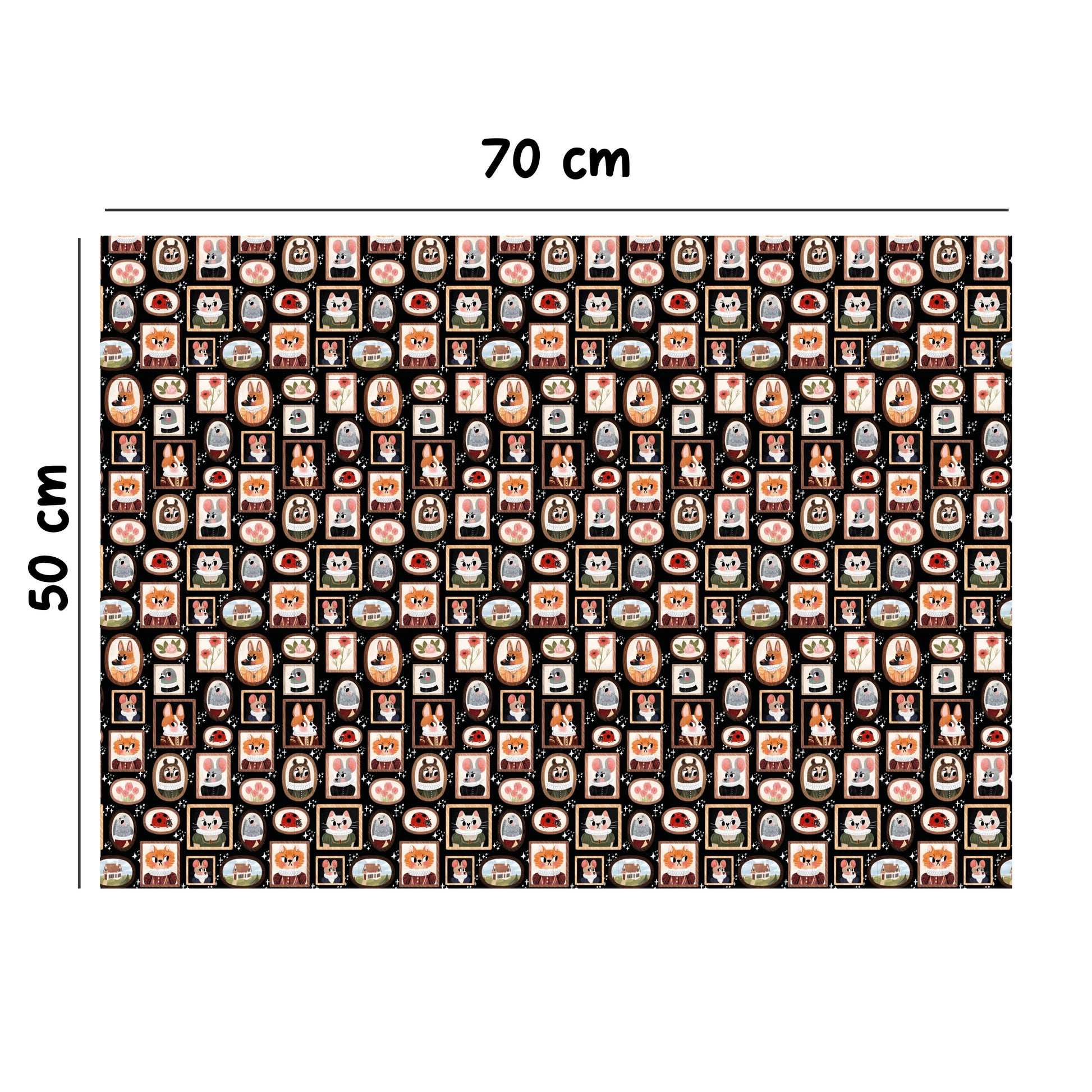 Turn your gifts into one-of-a-kind presents this Christmas with our adorable tiny frames wrapping paper sheets ! The sheet is slightly glossy and is decorate with a repetitive pattern featuring paintings of animals wearing ruffled collars, flowers, cottages..